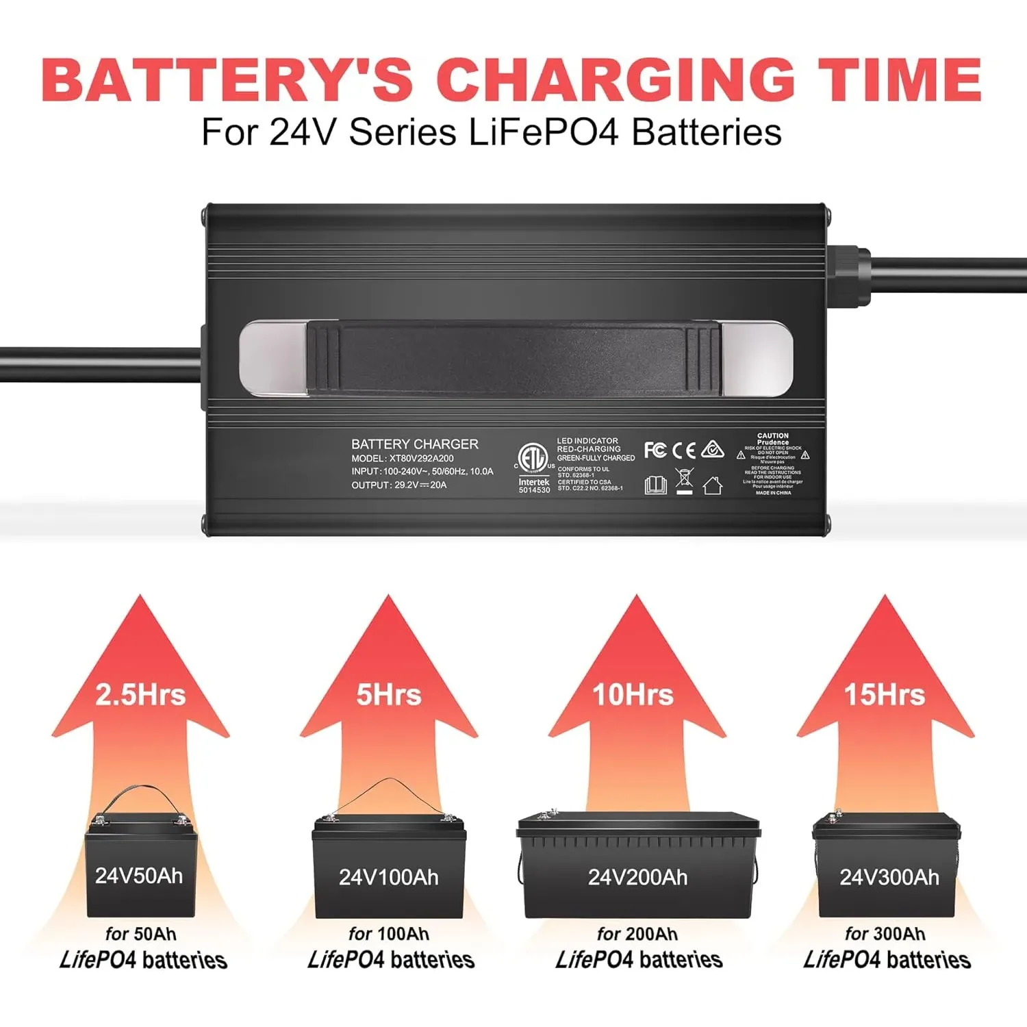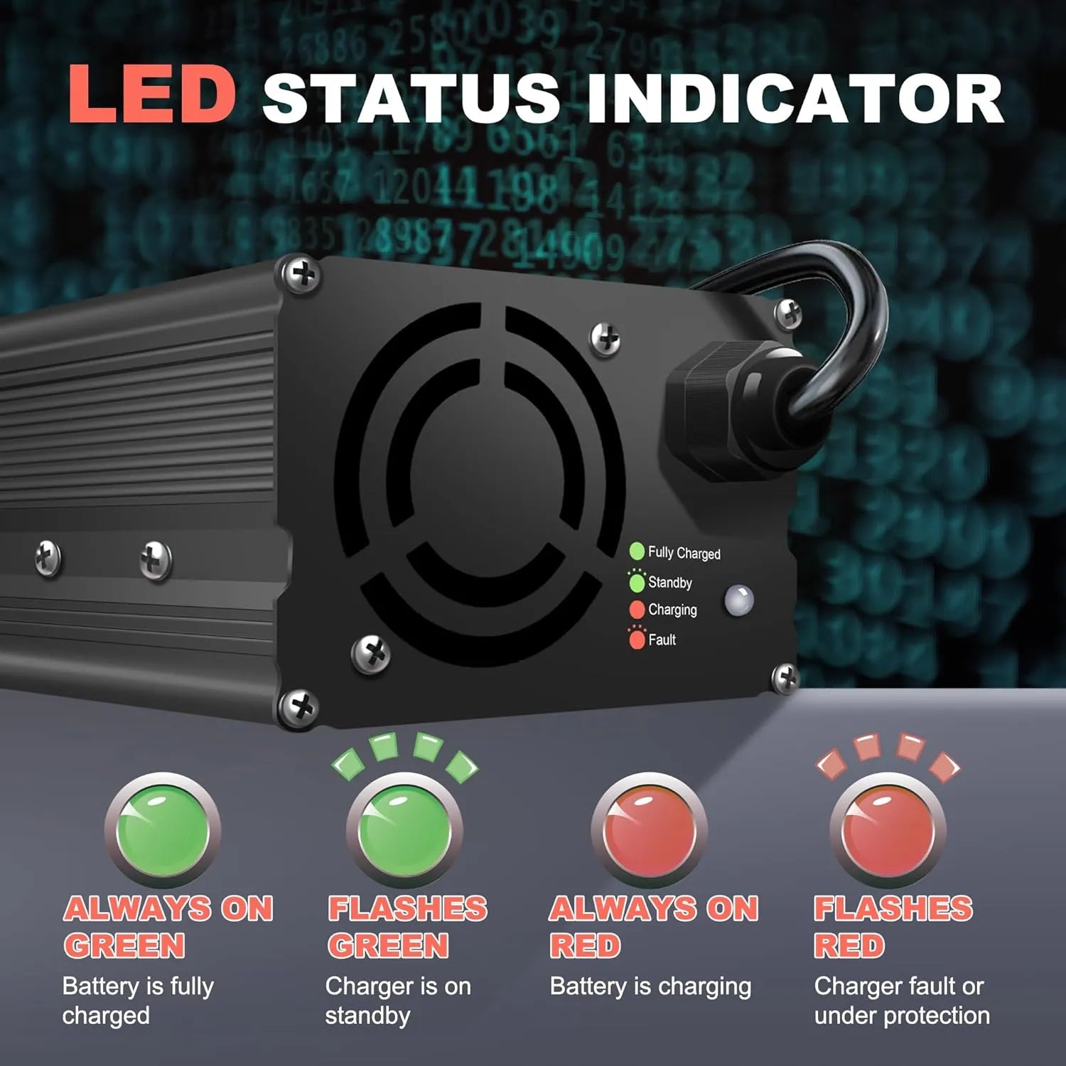 - Professional-Grade Fast Charging – 43.8V/18A high-power output for rapid charging, capable of charging from 0V and reviving dead LiFePO4 batteries.