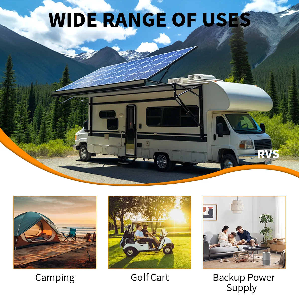 Yes. The battery has an IP65 waterproof rating and a built-in 200A BMS for protection against overcharge, over-discharge, overcurrent, short circuit, and temperature extremes. It’s reliable for RVs, solar storage, marine, and off-grid applications.